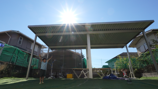 外で子供と一緒に遊べるスペースが欲しくて、ソーラーカーポートの購入を決めました。