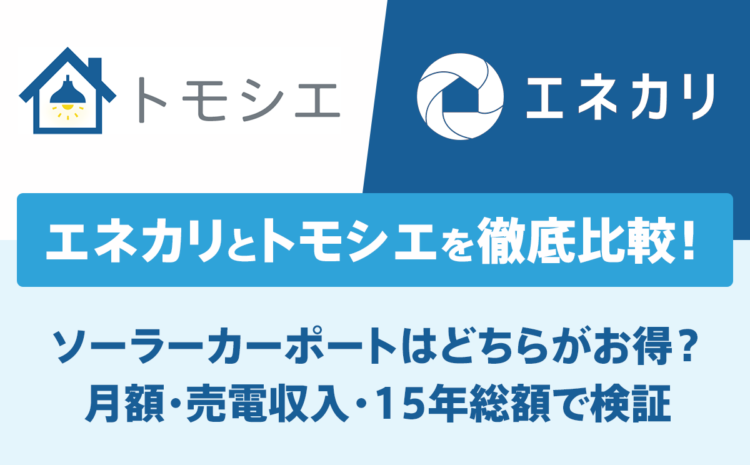 エネカリとトモシエを徹底比較!ソーラーカーポートはどちらがお得?月額・売電収入・15年総額で検証